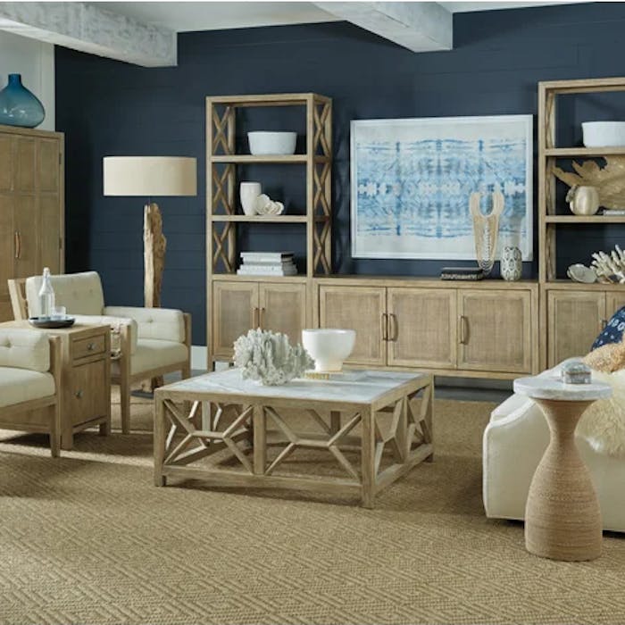Coastal style is light and breezy, using shades of blue, white, and sandy neutrals to evoke the seaside. Furniture is often casual and comfortable, with natural textures like wicker or linen, creating a relaxing, sunlit ambiance.